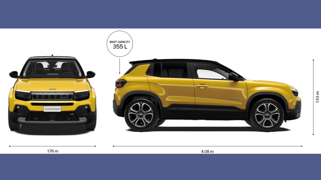 Jeep Avenger स्टाइल, कार्यक्षमता, तकनीक, सभी मौसम और सभी इलाकों में चलने के लिए सक्षम है। और सबसे बढ़कर, यह आपकी यात्रा के दौरान आपको आवश्यक स्वतंत्रता प्रदान करने के लिए उपलब्ध है।