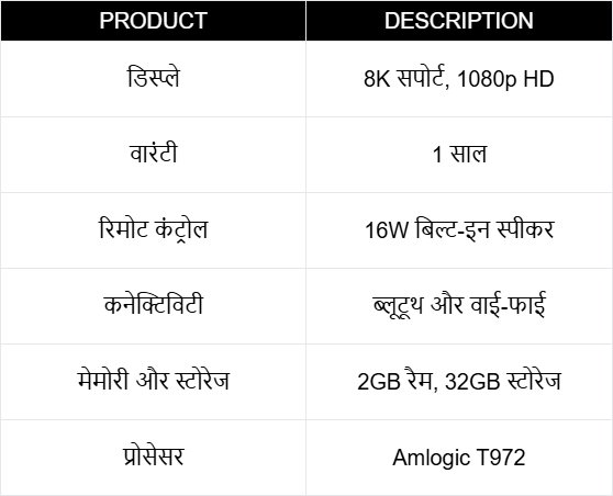 इसमें कनेक्टिविटी के लिए HDMI, दो USB पोर्ट, ईथरनेट पोर्ट और AUX आउटपुट जैसी सुविधाएं दी गई हैं।